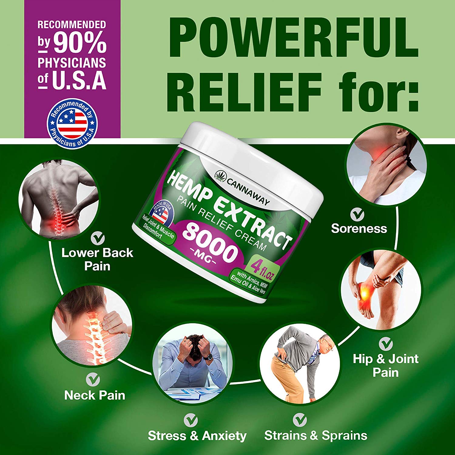 The CANNAWAY professionally advanced formula is specifically designed to provide you with all the Natural benefits and pain-relieving effects our active ingredients can offer: Hemp oil, Arnica, MSM, Emu Oil, and Aloe Vera. Only proven ingredients to alleviate pain and to enrich skin with vital nutrients!
